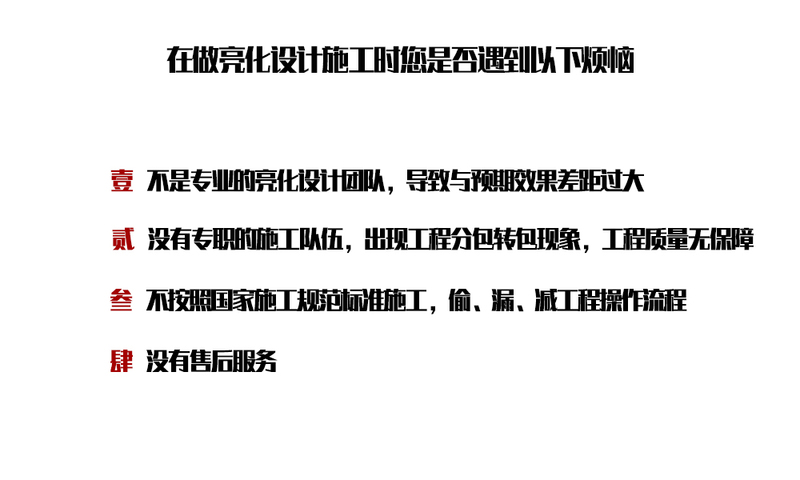 “五分設計,五分施工”。詳盡周密的施工組織計劃,專業(yè)且經驗豐富的安裝隊伍,設計師的親臨現場將會使“五分”的設計充分體現,融入到“五分”的施工中去,產生“十分”的景觀照明效果。
